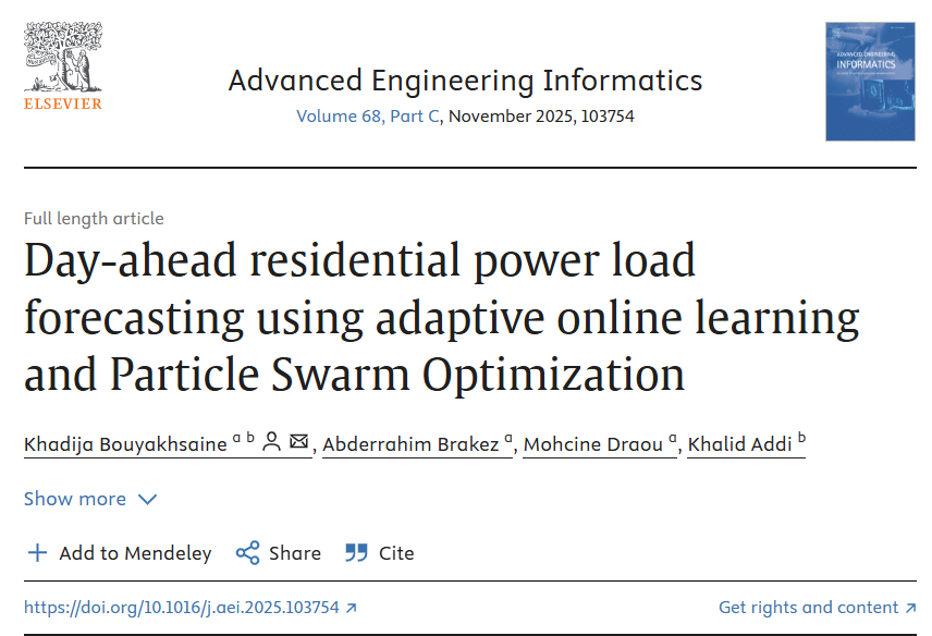 Prévision de la demande énergétique résidentielle pour le lendemain en utilisant l'apprentissage adaptatif en ligne et l'optimisation par essaim de particules :
